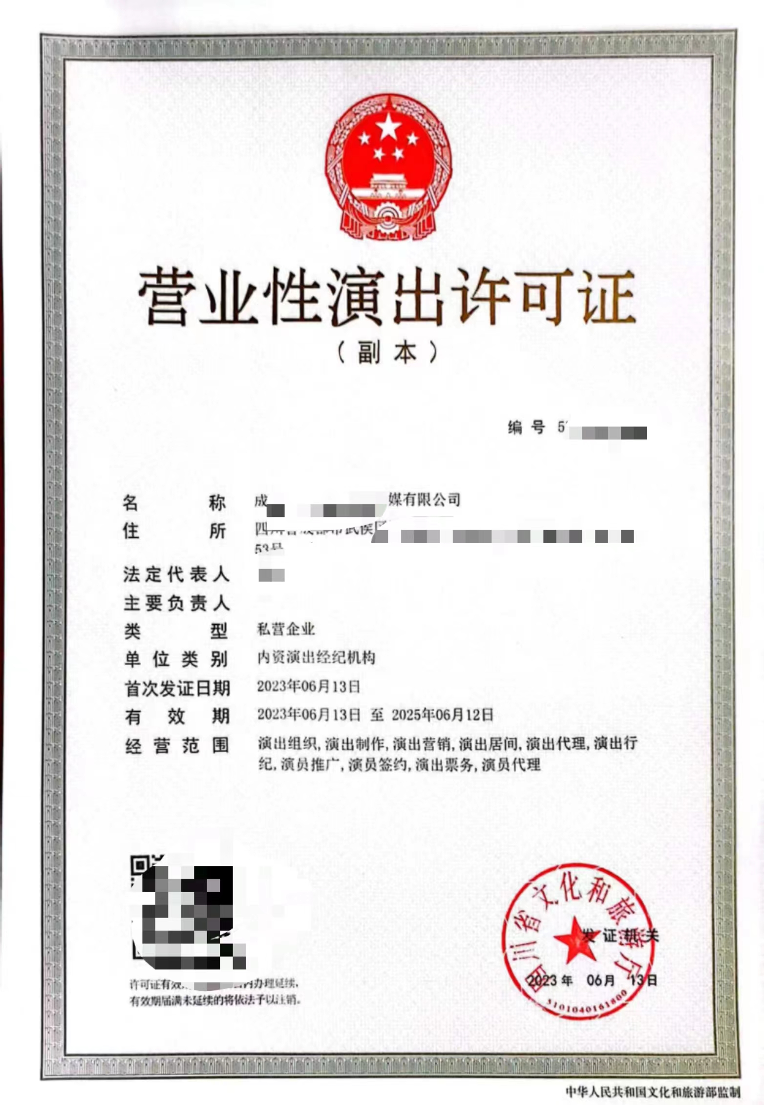 3名专职演出经纪人员的资格证书及扫描件等相关资料